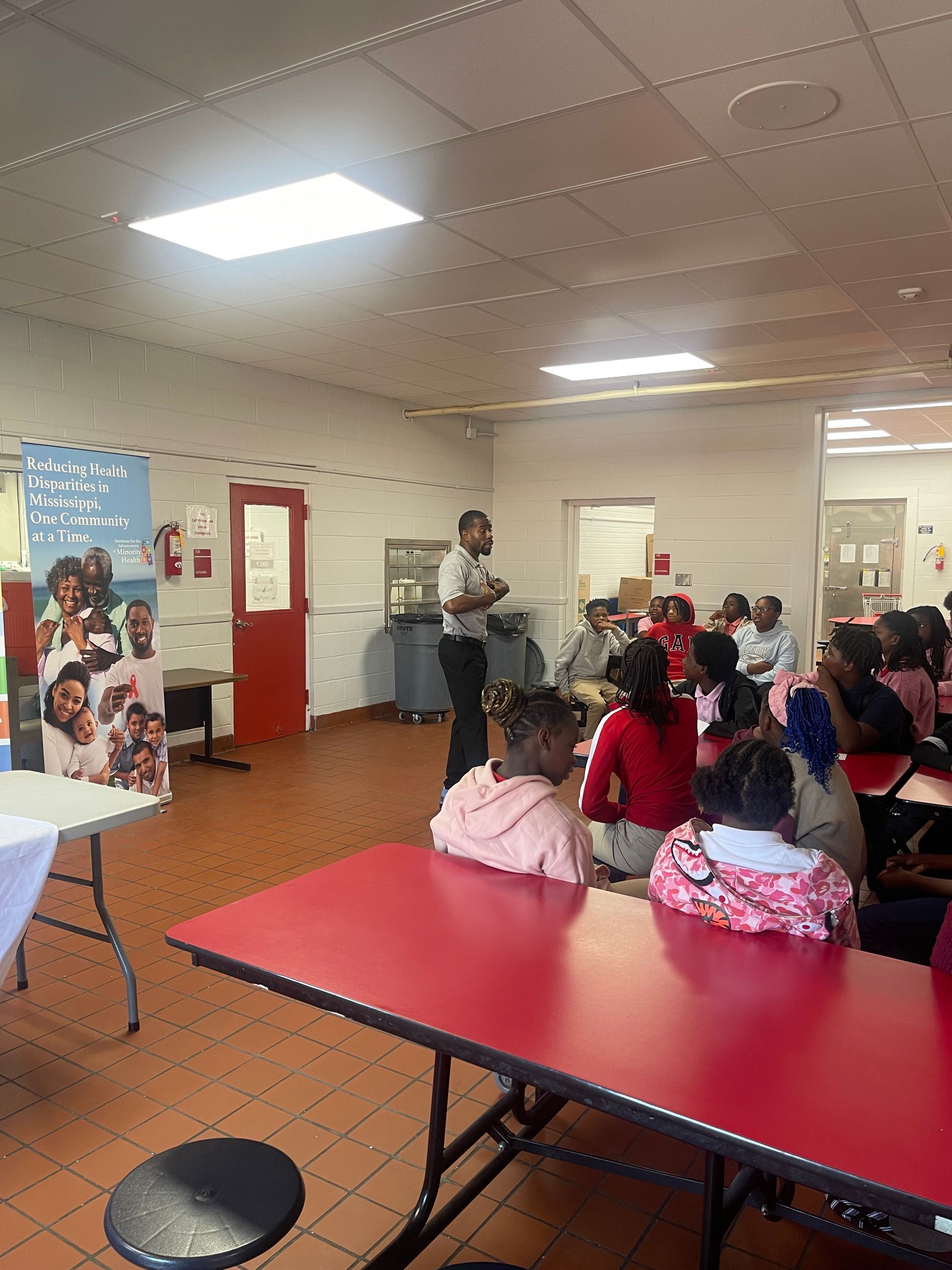On October 30th 2024 the Men's Health Equity Program Hosted its Vaping and Tobacco prevention event at West Bolivar Middle School. Epidemiologist Warren Jones briefly presented on the health risk of vaping and tobacco with the 7th and 8th grade students. The students also participated by presenting health facts to their peers and instructors. The event was concluded with a brief step show from  the Rho Epsilon Chapter of Omega Psi Phi Fraternity.